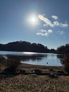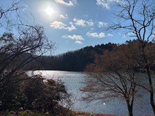 午前中だったので、朝日に輝く湖面が美しかった!