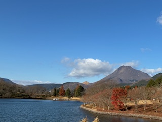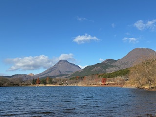 左に由布岳、右に鶴見岳を望むこの場所!