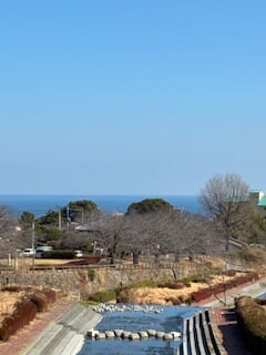 橋の上から海眺めました!