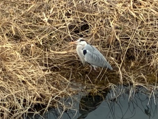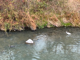 チュウサギ(右)とめっちゃ泳いでるカワウ(左)