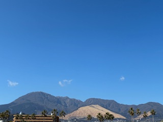 上人ヶ浜から見上げた鶴見岳・・・。