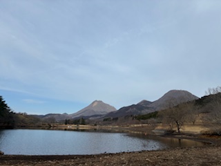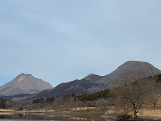 左に由布岳、右に鶴見岳。