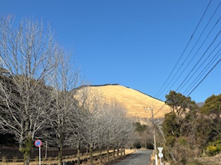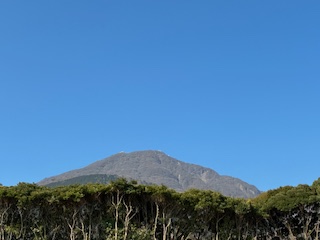 自衛隊駐屯地付近から見た鶴見岳。