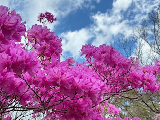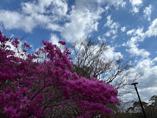 そんな中、薄暗い公園で明るく輝いてたのはミツバツツジ!