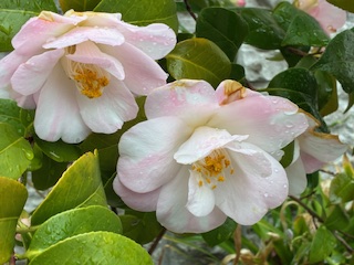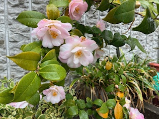 自宅の椿もまだまだ元気!雨に濡れていいですね!