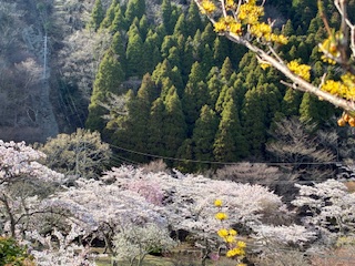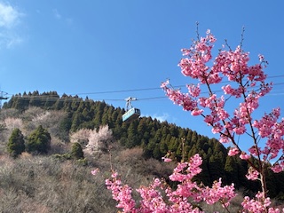 ヨウコウザクラとロープウェイ。