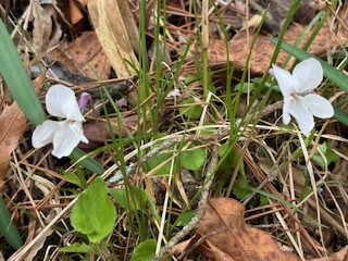 志高湖は、日陰の部分でこの白いスミレがたくさん見られます。