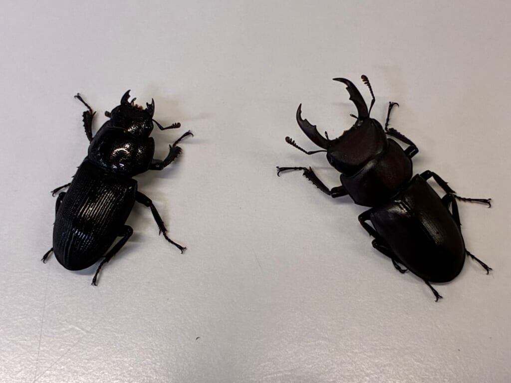 大分県でも、スジクワガタはとれますが、体が黒です。
