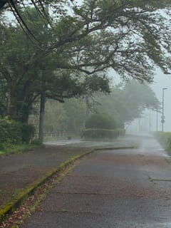 いつもなら見えてる鶴見岳も、この日は全く・・・。