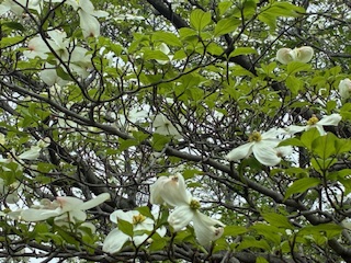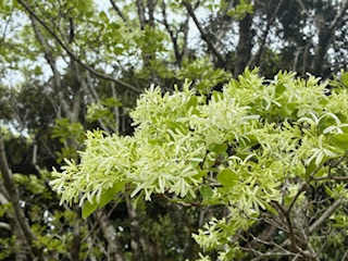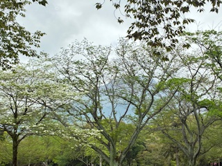 薄暗くてわかりにくいですが、左側にある木は白い花で覆われてます。