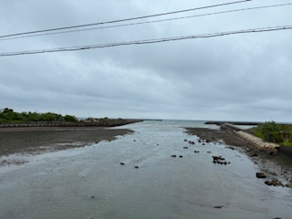 今回は引き潮時であまり水がない川沿いを歩いて下り・・・。